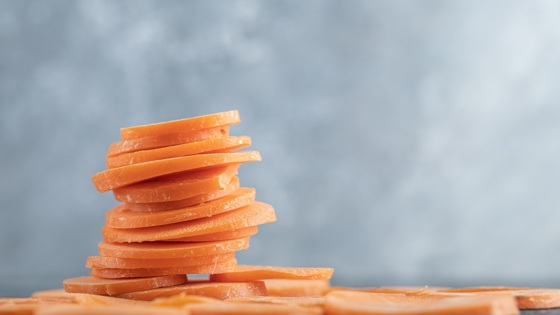 Морковь чистят и нарезают тонкими ломтиками. Если она молодая и сочная, достаточно бланшировать ее пару минут в кипящей подсоленной воде. Если нет, то придется варить до мягкости. После этого ее нужно хорошо обсушить.
