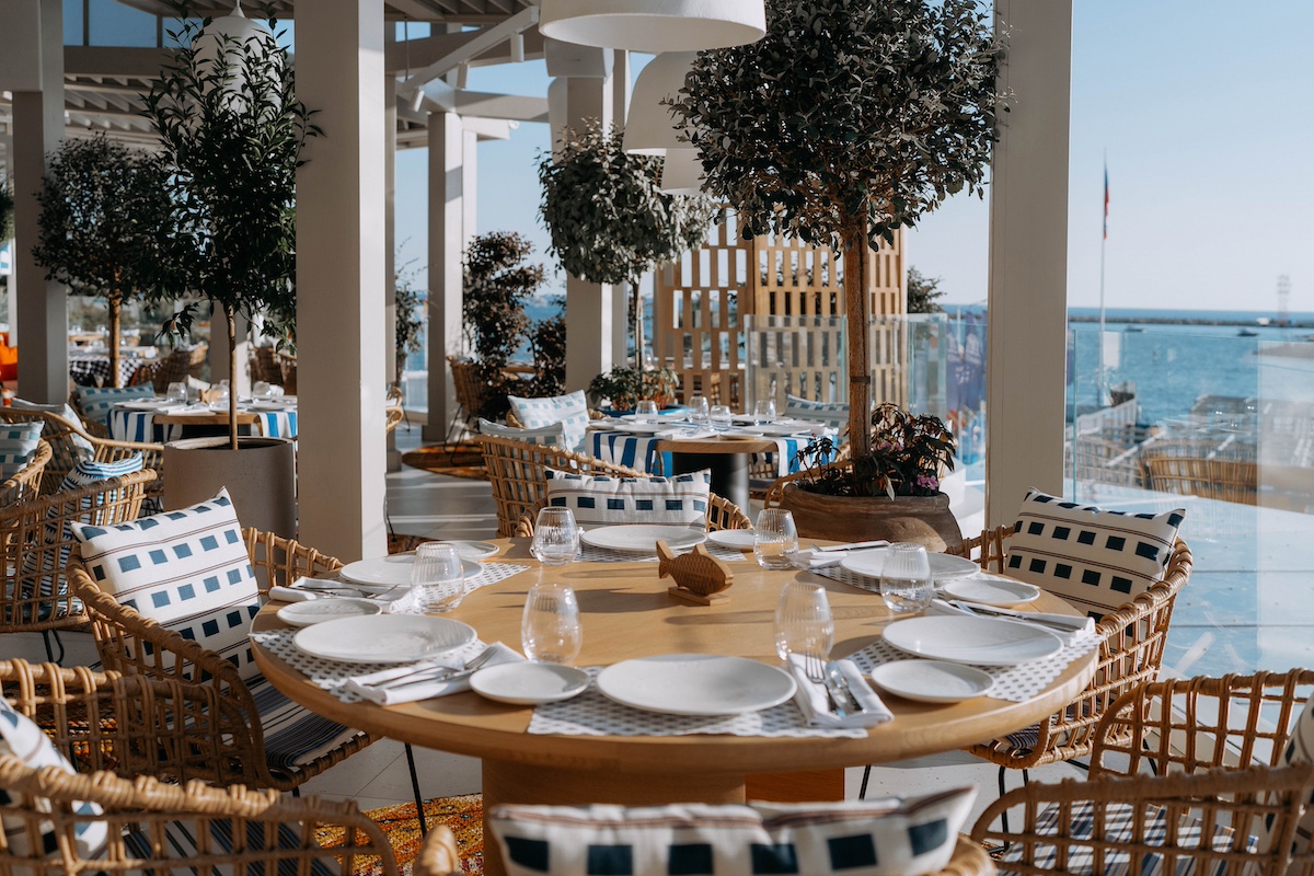 Четыре этажа ресторанного комплекса смогут удовлетворить совершенно разные требования к идеальному свиданию, будь то запрос на спокойный ужин в камерной обстановке, аперитив с видом на море или веселый вечер в сопровождении караоке. Цитаты из меню: «Эскалоп из фуа-гра с соусом из ягод» (3600 р.), «Лосось с капонатой по-сицилийски» (2400 р.), «Ролл с гребешком и угрем» (1620 р.).