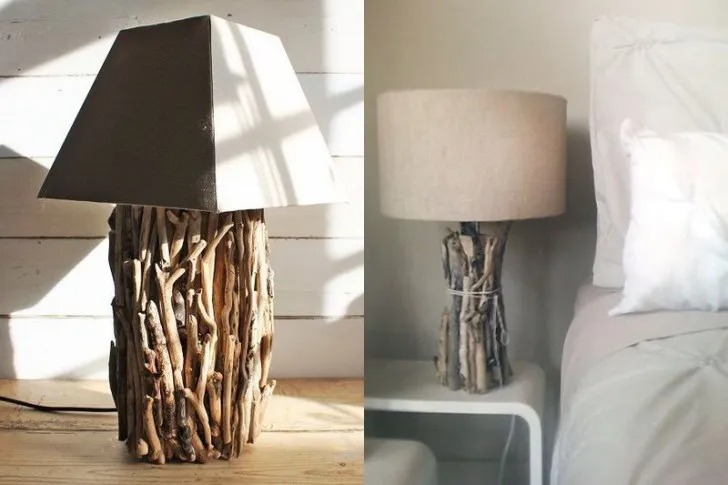 Сухие ветви способны придать особый шик настольным лампам. Они станут отличным дополнением интерьера в деревенском стиле.