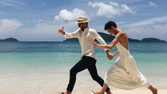 Еще год назад мы писали об Илье Живом как о талантливейшем молодом хореографе Мариинского театра (именно он ответственен за Daft Punk на сцене Мариинского театра) и его же назвали завидным женихом Петербурга. С первым — не ошиблись, со вторым — недосмотрели: теперь Илья женат на имиджмейкере Соне Вартанян, которую увез за тысячи километров от громкой сцены и холодного города, чтобы сыграть спокойную, почти интимную, свадьбу. Специально для сайта «Собака.ru» Соня рассказала о русско-тайской церемонии на Пхукете и дала мастер-класс по прыжкам в воду в свадебном наряде. Мы планировали сыграть торжество в Петербурге, но быстро отказались от этой идеи — хотели остаться с Ильей наедине и уехать подальше от привычной обители. Даже раздумывали отправиться в Вегас! Но в итоге решили, что будет символично провести церемонию в Тайланде — именно там почти год назад муж сделал мне предложение. С собой позвали только мою родную сестру, а родителей попросили дождаться нашего возвращения дома. Мы обязательно с ними поужинаем и отметим это событие, но сама свадьба — очень личный момент. Все происходило на берегу моря, на отдельном острове, куда нас доставили на небольшой лодке. Своеобразным ЗАГСом для меня и Ильи стала цветочная арка, где мы обменялись кольцами и произнесли клятвы. После — традиционная фотосессия и не совсем традиционный променад на белом скутере. На нем мы вернулись в наш стильный и красивый отель Naka на Пхукете, где распивали праздничное шампанское и прыгали в свадебных нарядах в бассейн. Идеально! Конкретной тематики у свадьбы не было. Для меня как для стилиста важным было сделать все по-своему, в любимом минимализме. Все — начиная от одежды и колец, и заканчивая нашими апартаментами, — было очень простым, но со вкусом. Я всегда ношу простые наряды, очень люблю открытую спину и декольте. В повседневной жизни выбираю именно такие силуэты и не стала отходить от них при составлении своего свадебного образа. Платье я изначально представляла именно таким, но, на удивление, не могла найти подобный фасон в магазинах. У нас очень много нарядов в «бельевом стиле», но все было не то! В итоге обратилась за помощью к своей хорошей подруге и дизайнеру бренда Jana Segetti Натальи Каптур. Она сшила все в сжатые сроки, буквально за неделю, и платье доставляла мне на остров родная сестра — единственный гость на нашей с Ильей свадьбе. Так что финальная примерка была уже в ночь перед самой церемонией.