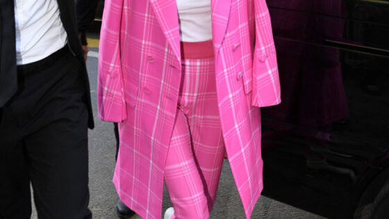 Барби? Джиджи Хадид в розовом костюме в клетку