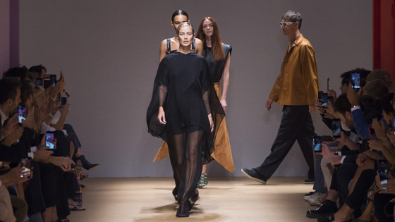 Одежда, которую захочется носить каждый день — так модные критики отзываются в последнее время о Salvatore Ferragamo. Уже второй сезон подряд два дизйнера мужской и женской линий Гильом Милланд и Пол Эндрю работают рука об руку, чтобы довести элегантность всей одежды бренда до совершенства. Примечательно, что создают они ее из расчета на аудиторию любого возраста. Это доказывает весенне-летний показ, где участвовали уже легендарные модели вроде Стеллы Теннант и Даутцен Крез и еще начинающие типа Кайи Гербер. В коллекции были представлены расклешенные кожаные юбки и бермуды, которые могут понравится как адептам офисного дресс-кода, так и просто любителям изысканного стиля. Дизайнеры предлагают носить также тяжелые плащи с капюшоном с принтованной подкладкой, которые подойдут для любого межсезонья. А еще бежевые комплекты в стиле сафари из свободных брюк, бомберов, комбинезонов с широкими лямками и раслешенных юбок. Фото: IMAXTREE