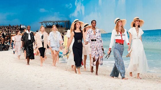 Модели представляли весеннюю коллекцию Chanel босиком. В выставочном зале «Гран Поле» в самом центре Парижа плескались волны. И это не сцена из фильма-катастрофы. Просто знаменитый дизайнер Карл Лагерфельд отчаянно пытается продлить лето. Поэтому устроил показ новой коллекции буквально на пляже. Вместо подиума появился пляж, шумел прибой, а тех, кто от этой красоты решил бы утопиться, откачал бы специально приглашенный спасатель. Модели не стали надевать обувь – дефилировали по «пляжу» босиком. Кадры с показа появились в официальном аккаунте в Twitter дома Chanel. Карл Лагерфельд представил свою новую коллекцию Chanel в последний день Парижской модной недели.