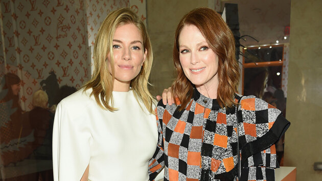 В мини и кожаных ботфортах: Джулианна Мур и Сиенна Миллер на вечере в Нью-Йорке