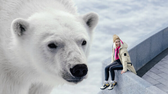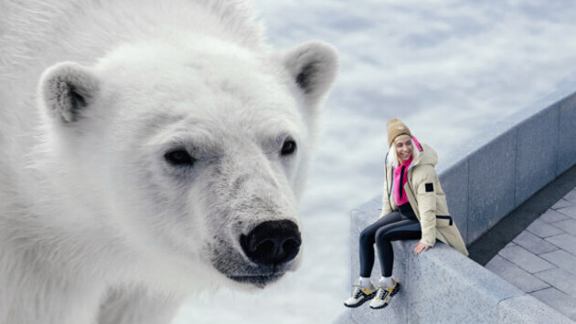 Дело осталось за малым — воплотить нашу идею в +26 в августе. Решением стали сюрреалистичные графические вставки в городские ландшафты. Так появились айсберг на Садовом, метель в дорожных знаках, северное сияние в подземном переходе, ныряющий медведь и бегущие олени на Стрелке. Мы не хотели играть в супернатуральность, как в фильмах Нолана — графика должна была работать резко и неожиданно, подчеркивая глобальную платформу бренда Sport the Unexpected.