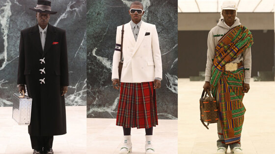За последний год наши возможности путешествовать стали, мягко говоря, весьма ограничены. Что в этой ситуации делать брендам и дизайнерам, чья эстетика в значительной степени завязана на странствиях? Правильно: фантазировать. Именно этим и занялся Вирджил Абло, когда создавал новую мужскую коллекцию Louis Vuitton осень-зима 2021/22. В отсутствие путешествий реальных, дизайнер приглашает нас в воображаемое. И, судя по всему, он решил отправиться вместе с нами в настоящую кругосветку. В новом диджитал-шоу он показал невероятно смелый микс стилей и эпох, который при других обстоятельствах мог бы и не случиться. В одной коллекции встретились шотландские килты, ковбойские шляпы и сапоги-казаки, парадные камзолы в духе XIX века, пальто-кимоно, драпированные клетчатые пледы, как у африканского племени масаи, и даже — короткие пуховики с объемными деталями в виде реплик главных достопримечательностей Парижа и Нью-Йорка. Что нужно для такого захватывающего путешествия во времени и пространстве? Конечно же, ни одна поездка, даже воображаемая, не обходится без транспорта. Им на этот раз стал самолет — изображения "железных птиц" появились и на свитерах, и в качестве пуговиц на пиджаках и пальто, и даже вдохновили форму одной из сумок! В общем, если вы уже очень сильно соскучились по поездкам на дальние расстояния, то вполне можете посмотреть этот показ. Он во многом поможет утолить вашу жажду странствий — хотя бы на время.