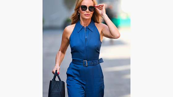 Знаменитость попала в объектив папарацци, когда направлялась на работу в студию радиостанции Heart FM в Лондоне. Холден запечатлели без бюстгальтера в облегающем комбинезоне синего цвета бренда Reiss jumpsuit стоимостью 265 фунтов стерлингов (28 400 рублей). Ее образ дополнили темно-синие сумка и лодочки на каблуках, а также солнцезащитные очки.