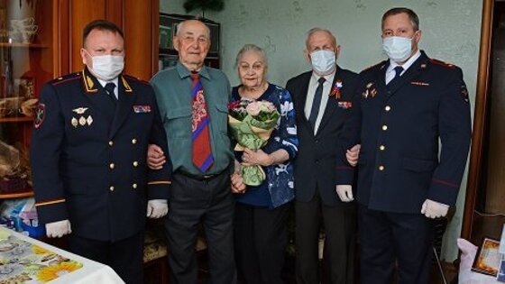 «Руководители областного УМВД и ветеранской организации поздравили ветеранов с наступающим Днем Победы, подарили им подарки, цветы и вручили памятные адреса. Генерал-майор полиции Павел Гаврилин пожелал им крепкого здоровья, неиссякаемой энергии и всегда оставаться жизнерадостными. Завершился визит общим фотографированием на память», - сообщили в пресс-службе управления.