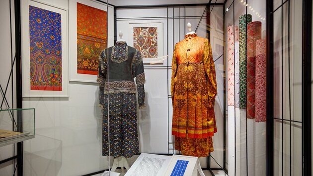 Образцы народного костюма, сшитые полностью или фрагментарно из ситцев, не только платки, но и сарафаны, рубахи, фартуки, головные платки, юбки, платья и даже холодайки, представлены на выставке. Географию их использования легко проследить по характерным деталям костюма той или иной губернии: Рязанской, Вологодской, Курской, Пермской, Архангельской, Воронежской и других.