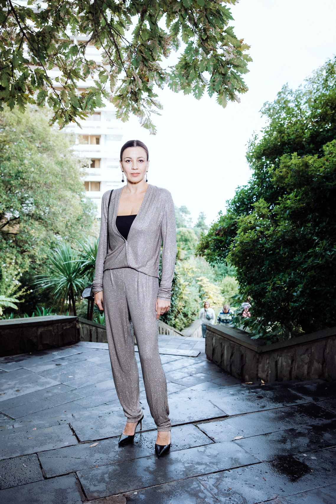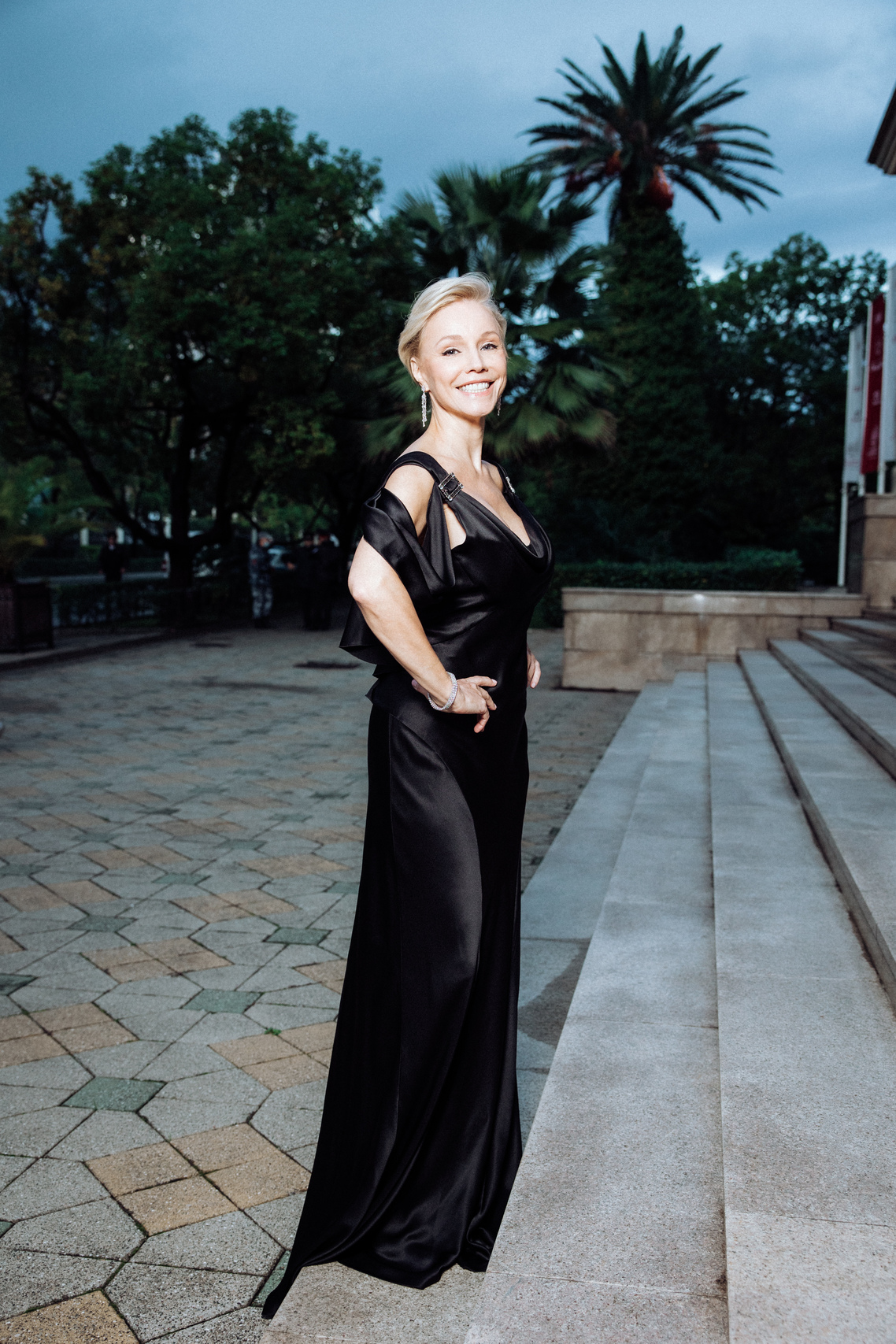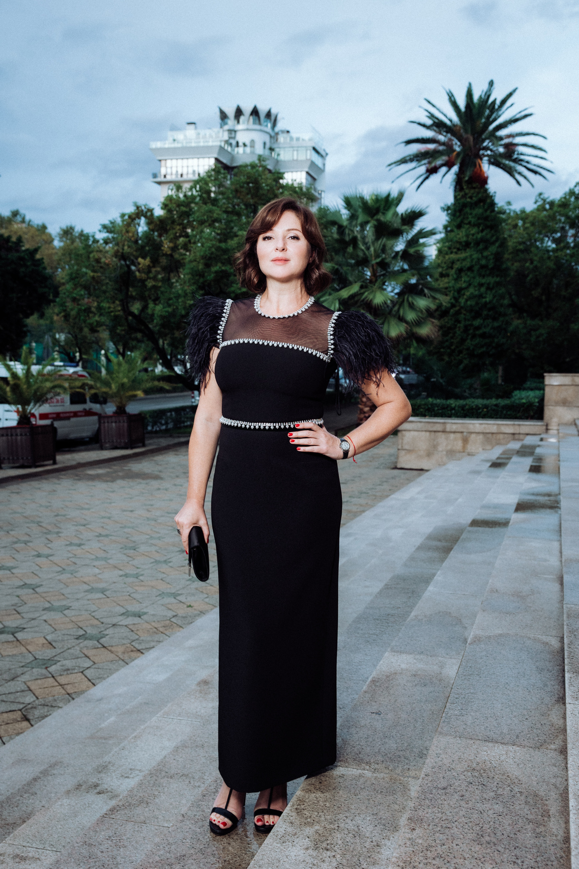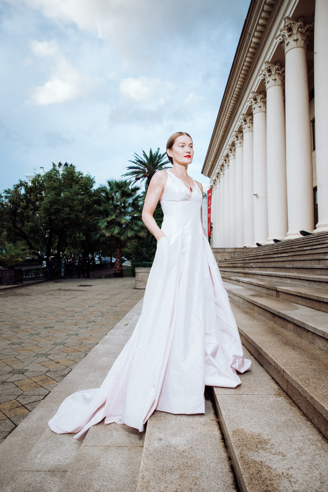 В платье-силуэте черного цвета появилась Марина Зудина. Помимо яркой детали в виде спущенных плеч, образ артистки украсили бриллиантовые украшения — браслет и серьги. Председатель жюри — Чулпан Хаматова — также отдала предпочтение беспроигрышному total black. Звезда позировала в костюме, состоящим из пиджака oversize и брюк прямого кроя.