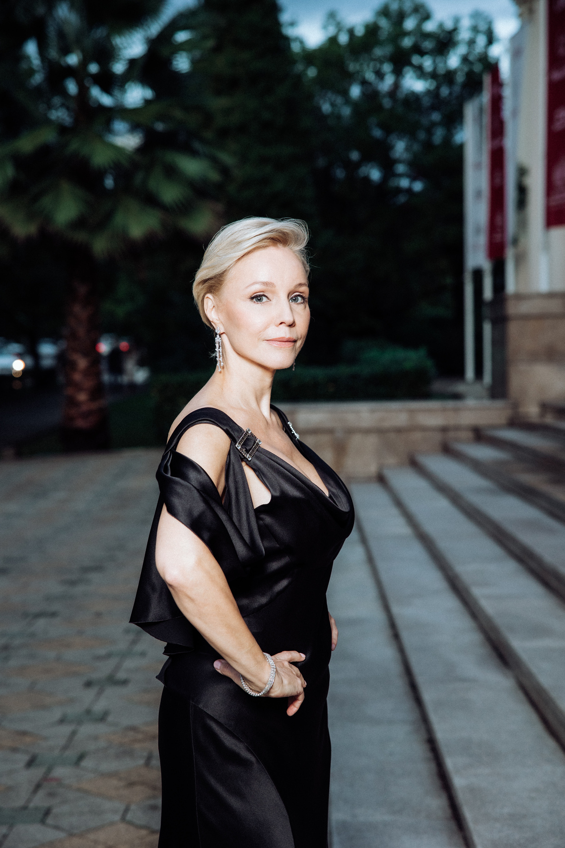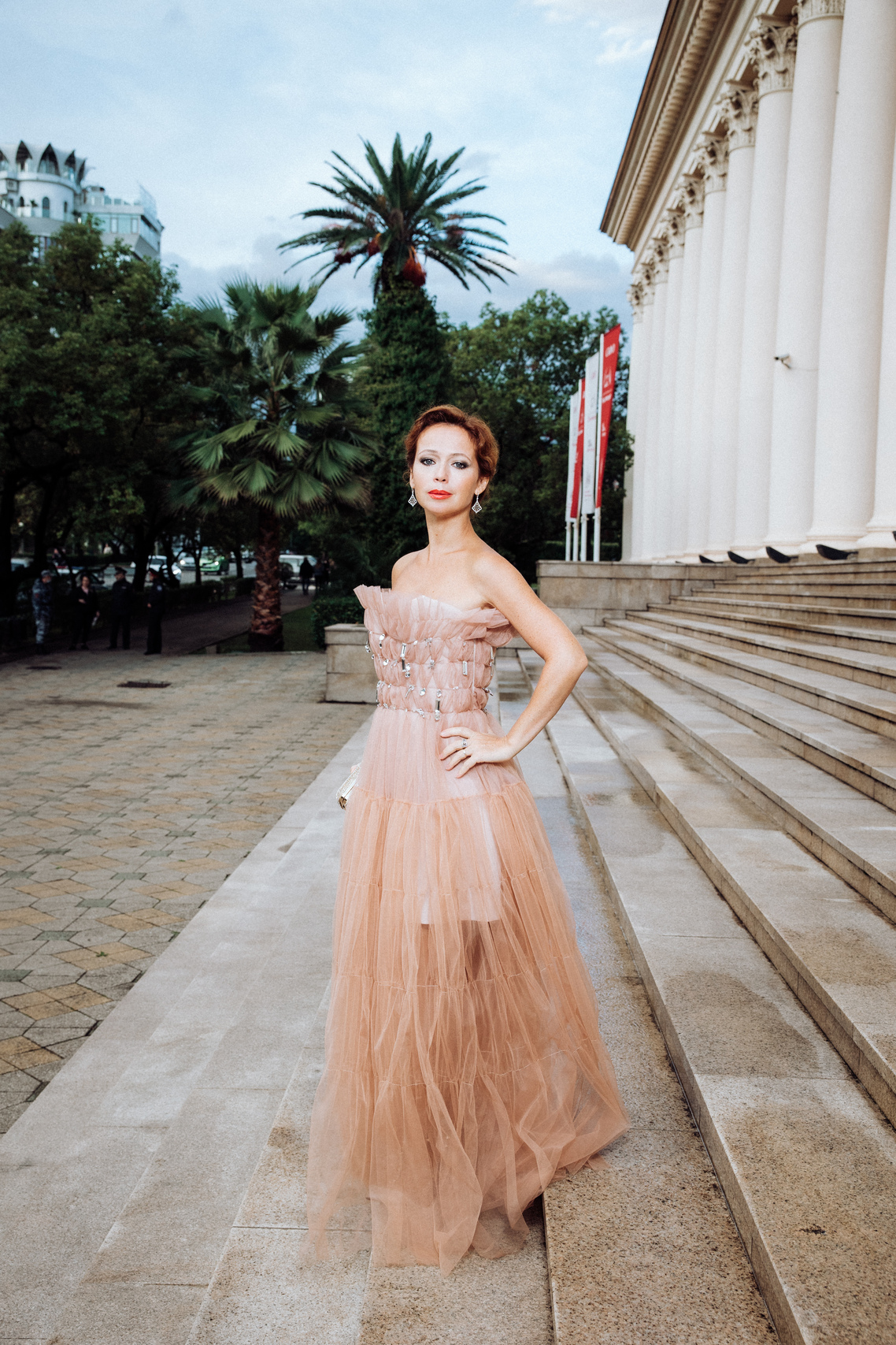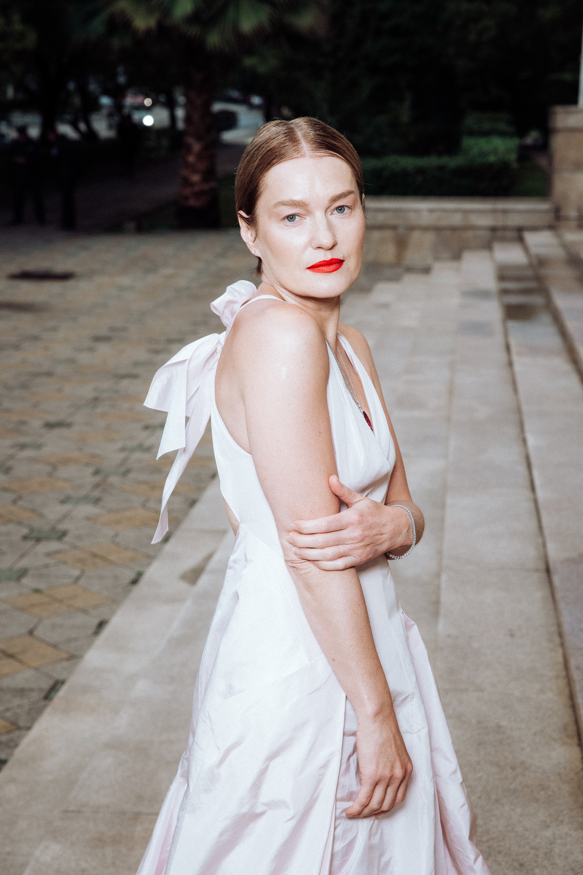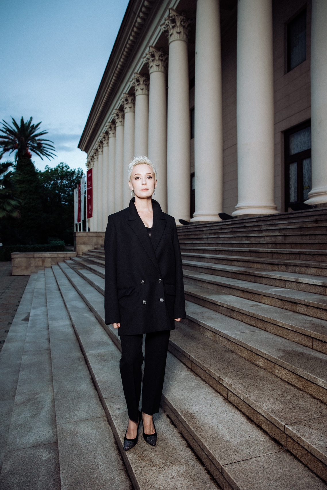 В платье-силуэте черного цвета появилась Марина Зудина. Помимо яркой детали в виде спущенных плеч, образ артистки украсили бриллиантовые украшения — браслет и серьги. Председатель жюри — Чулпан Хаматова — также отдала предпочтение беспроигрышному total black. Звезда позировала в костюме, состоящим из пиджака oversize и брюк прямого кроя.