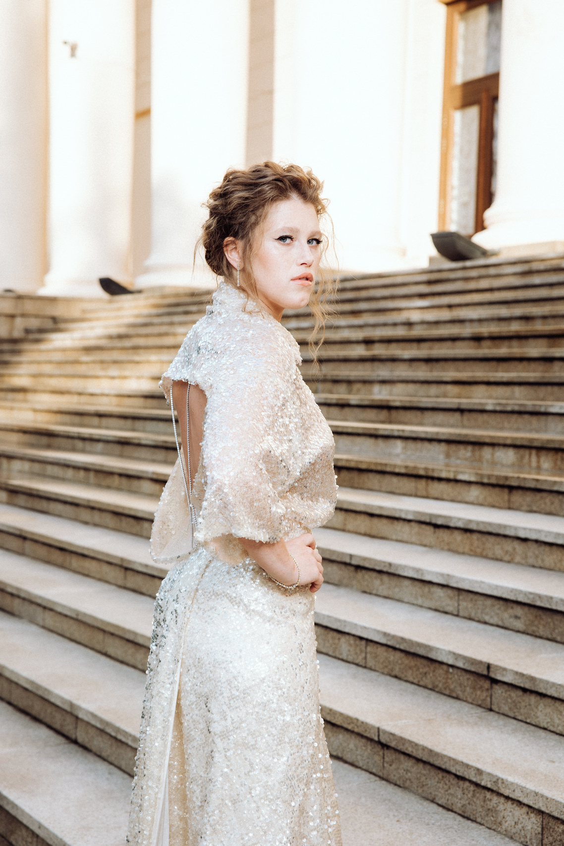 На состоявшимся закрытии образы звезд смотрелись по-настоящему торжественно. Варвара Шмыкова предстала в роскошном платье, расшитом золотыми пайетками с открытой спиной. Похожую комбинацию выбрала другая актриса — Ольга Сутулова, но уже с открытым декольте.