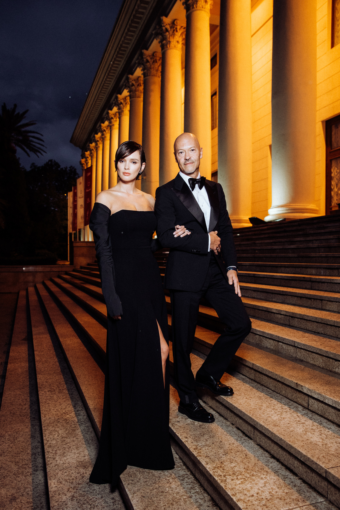 Битву глубоких декольте устроили супруга Федора Бондарчука Паулина Андреева и ее коллега — Сабина Ахмедова. Первая позировала в наряде чёрного цвета с вау-разрезом. Дополнением к образу стали декоративные рукава. Ахмедова же отдала предпочтение расшитыми пайетками топу на тонких бретельках и юбке миди. На ноги девушка надела босоножки на каблуке в тон наряду.