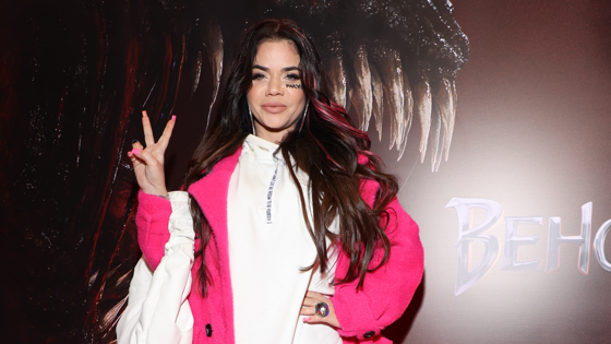 Алена Водонаева пришла на премьеру в эффектном черном плаще и с уместным аксессуаром в виде перчаток, изображающих Венома. Яркий клатч стильно дополнил образ.