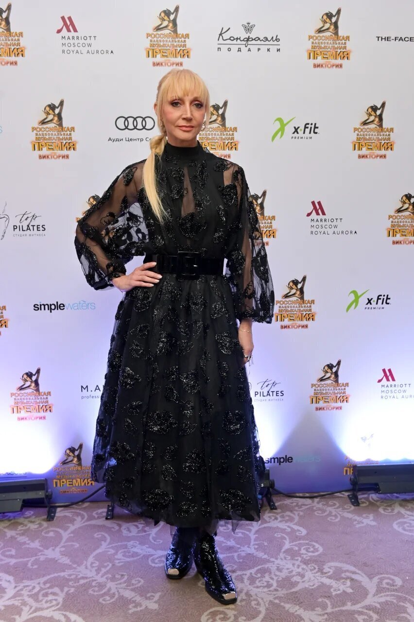 Для гала-ужина Кристина Орбакайте выбрала прозрачное платье с черной юбкой и цветочной вышивкой. Воздушный наряд певица завершила грубыми ботинками с серебряным металлическим мысом. Талию звезда подчеркнула с помощью лакового ремня с крупной пряжкой.