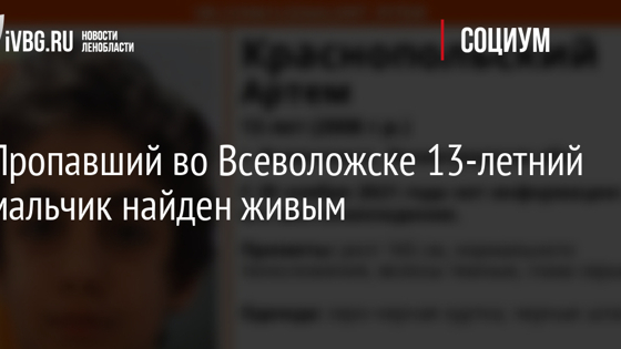 Пропавший во Всеволожске 13-летний мальчик найден живым
