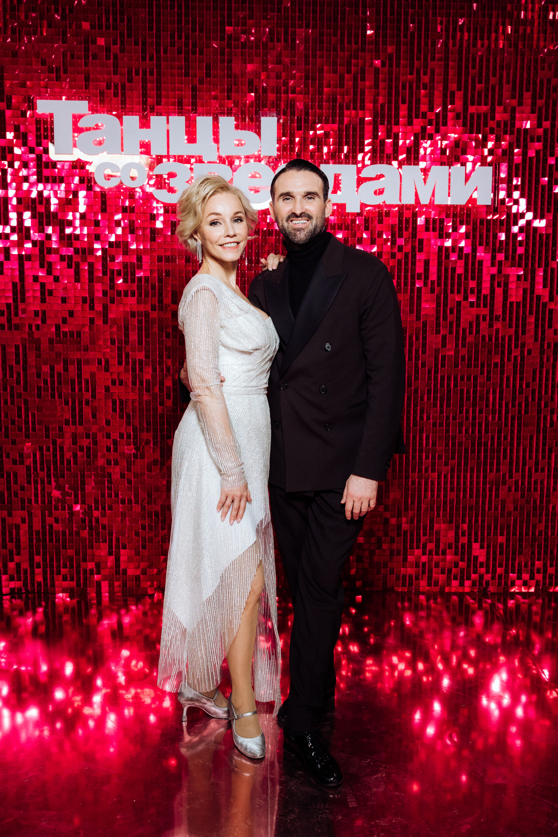 Под вторым номер выступили Мария Миронова и Евгений Папунаишвили. Актриса вышла на паркет в элегантном черно-белом платье в пол и исполнила вместе со своим партнером чувственный вальс.