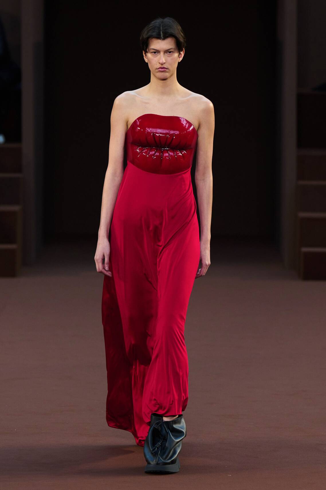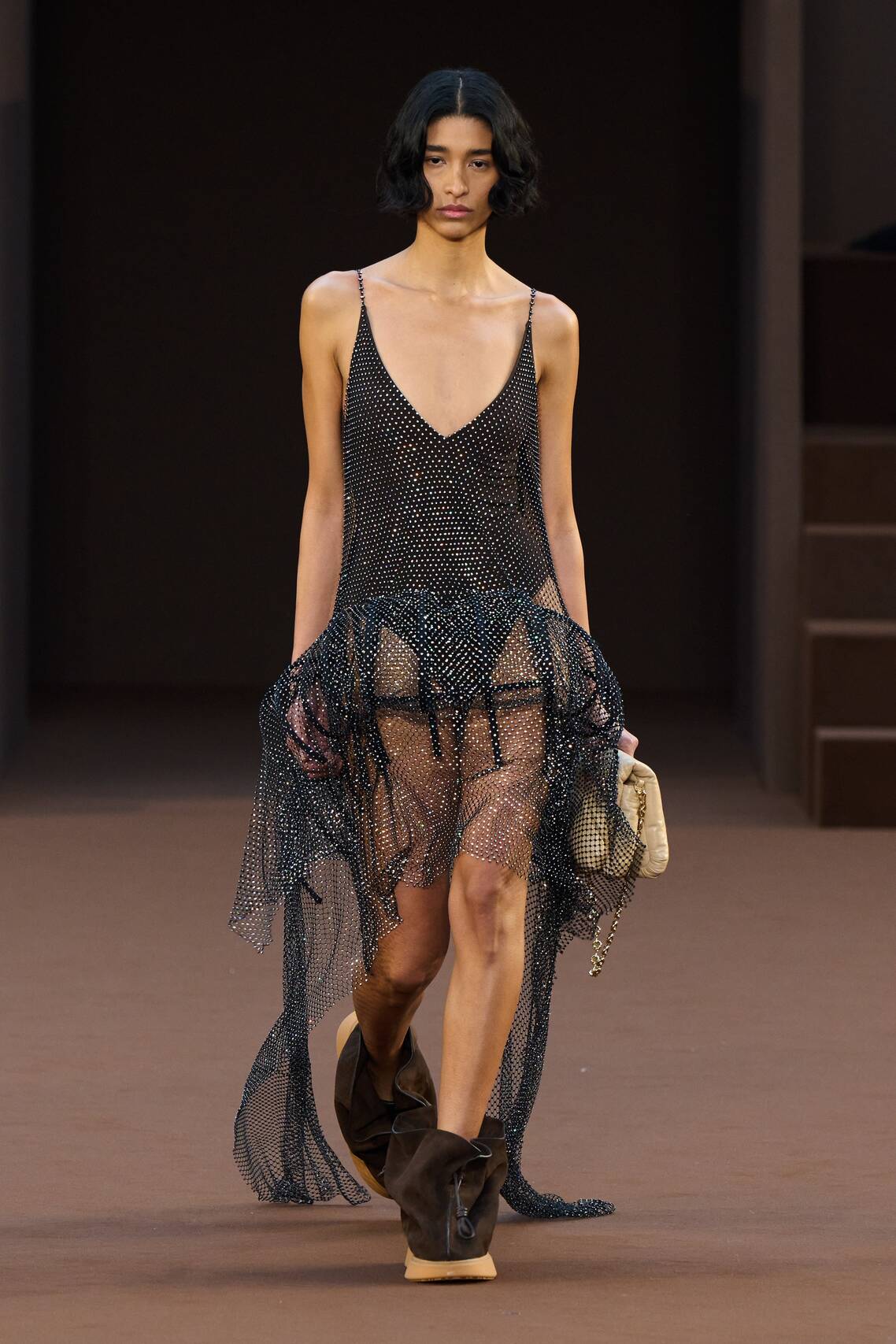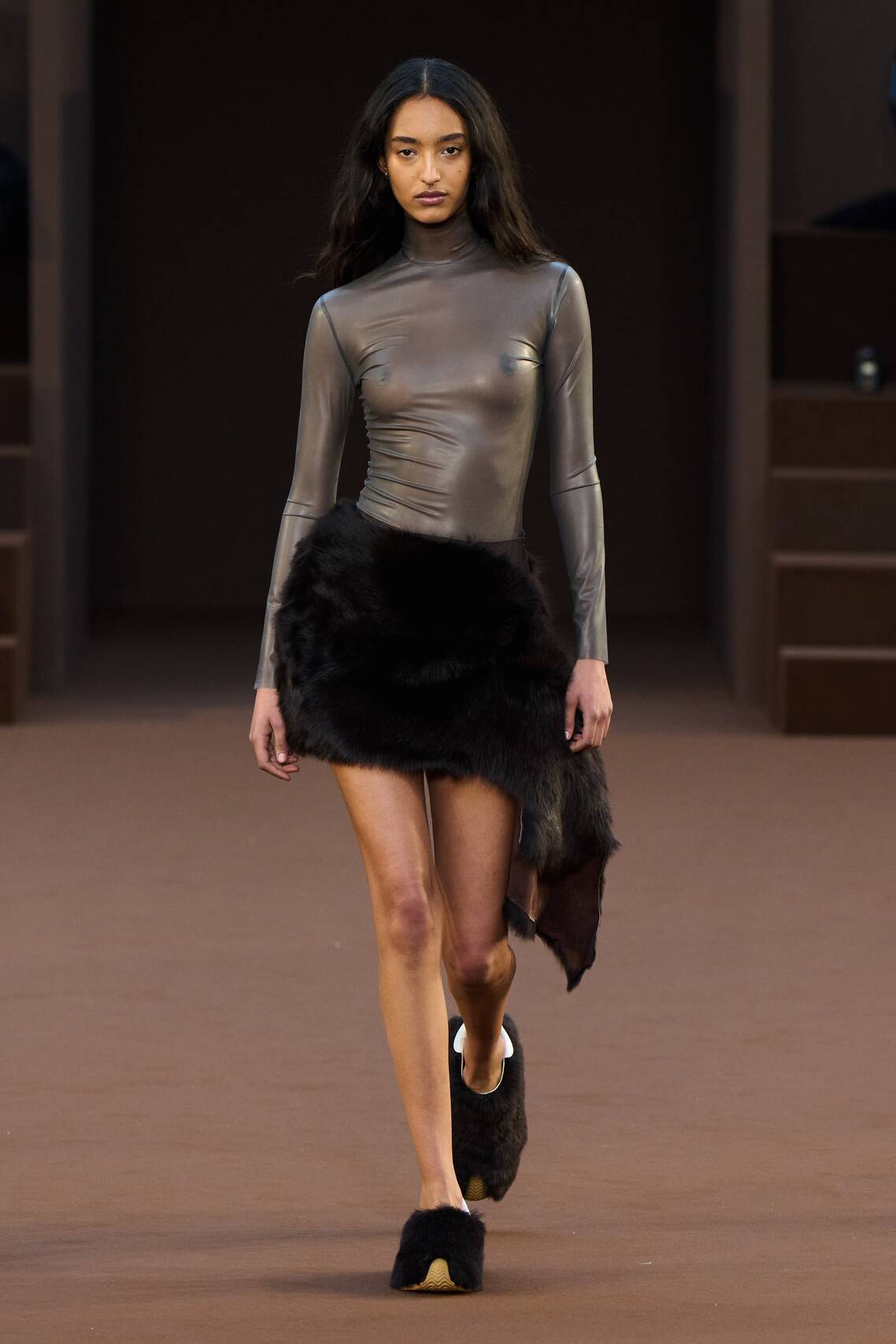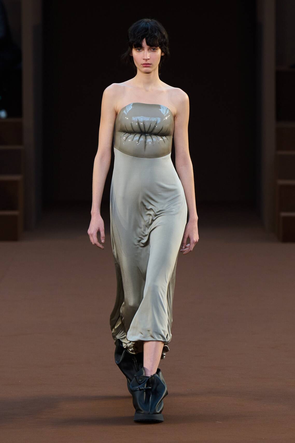 — Белла Хадид в «голом» платье и латексных ботфортах прошлась по подиуму в Париже