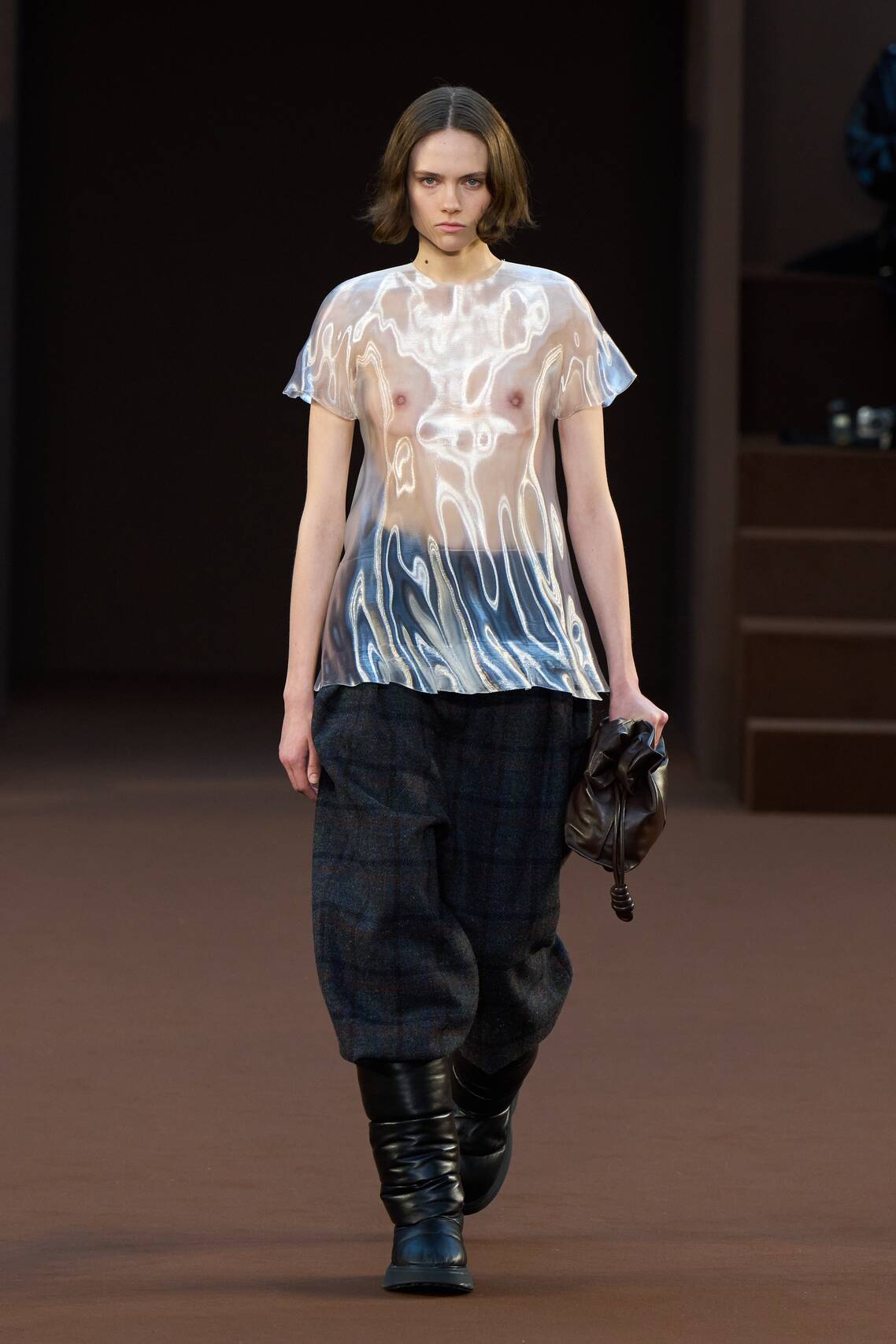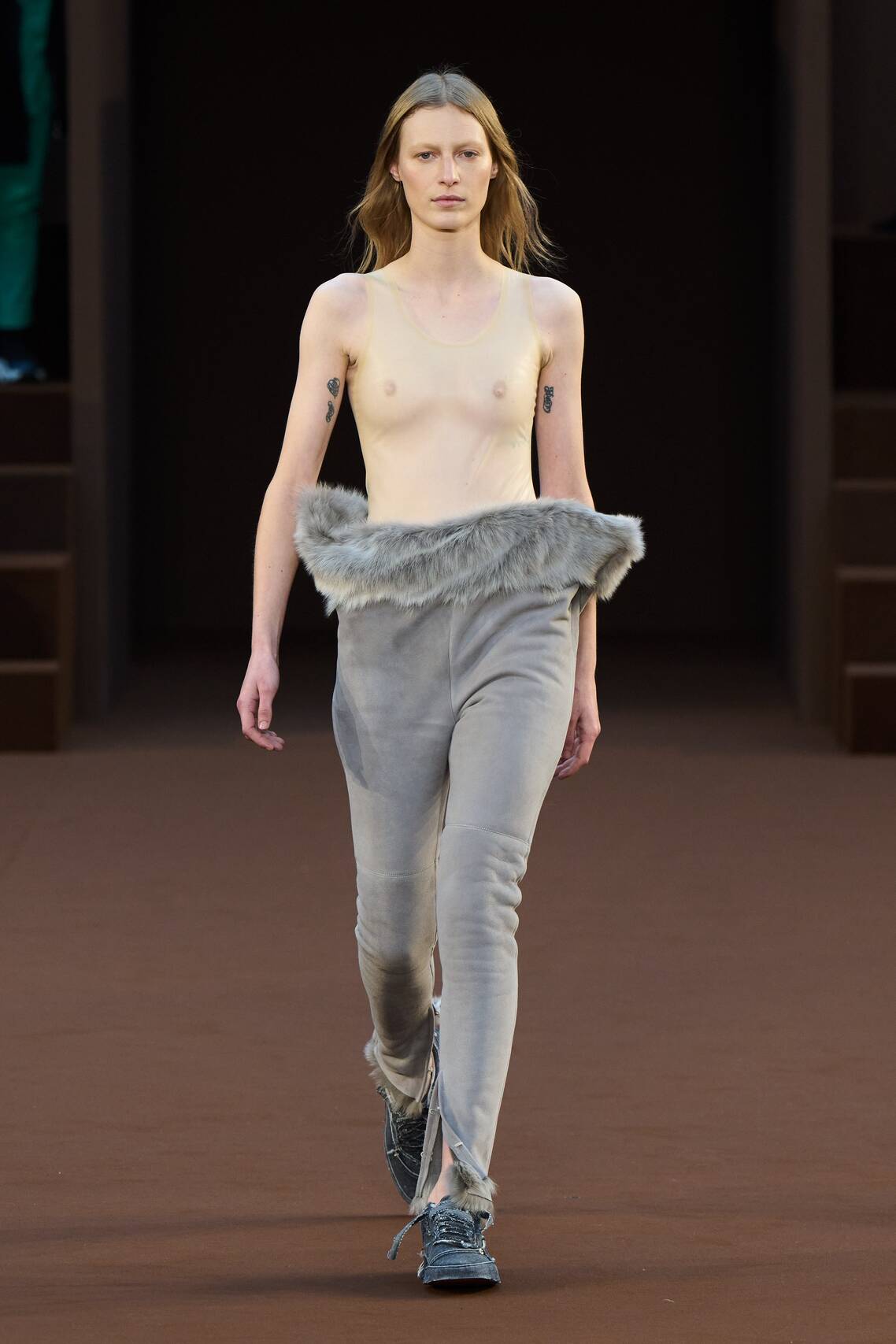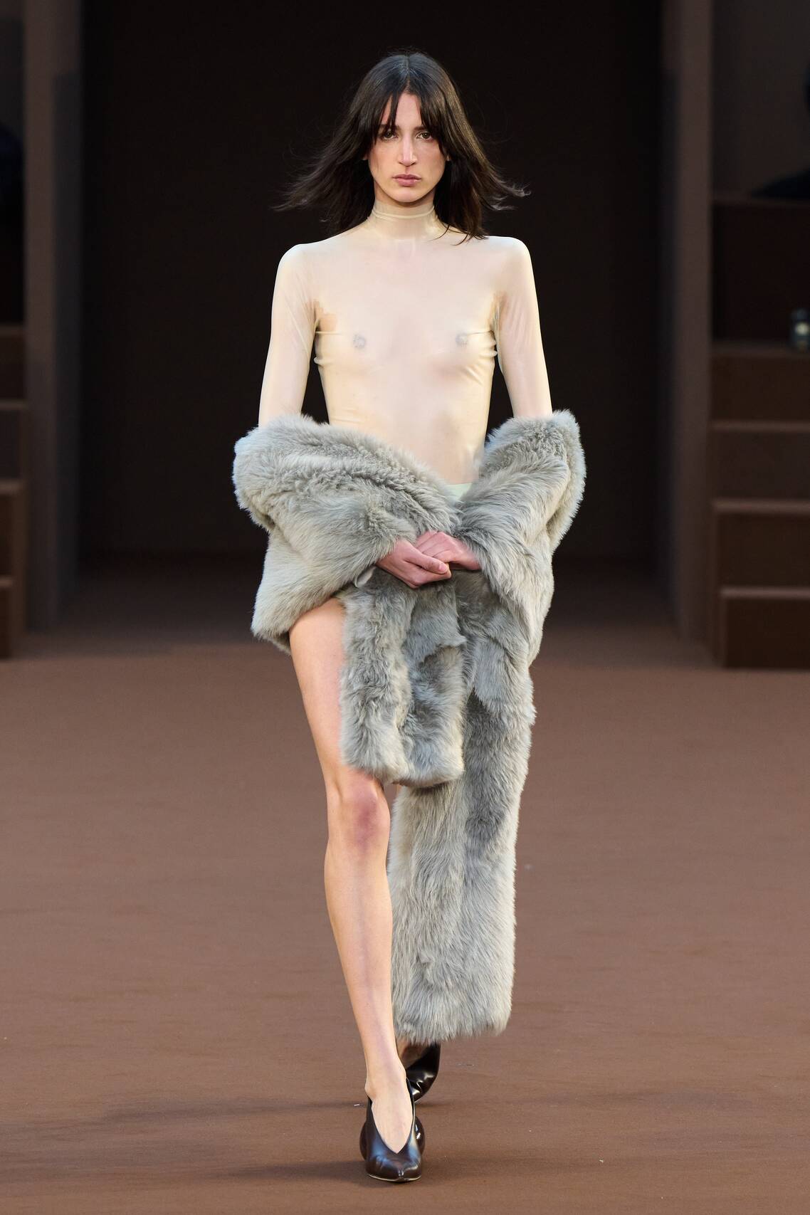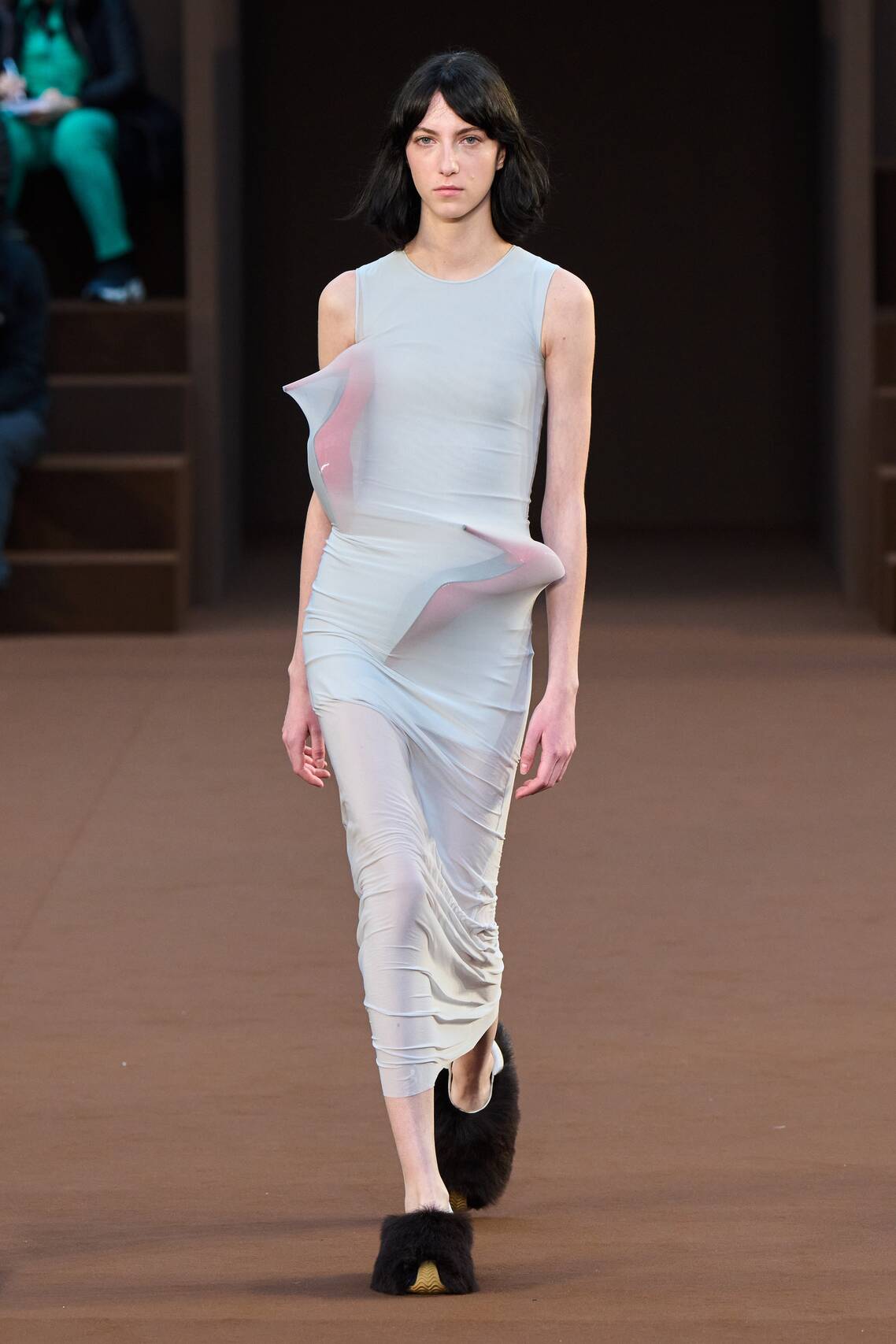 — Белла Хадид в «голом» платье и латексных ботфортах прошлась по подиуму в Париже