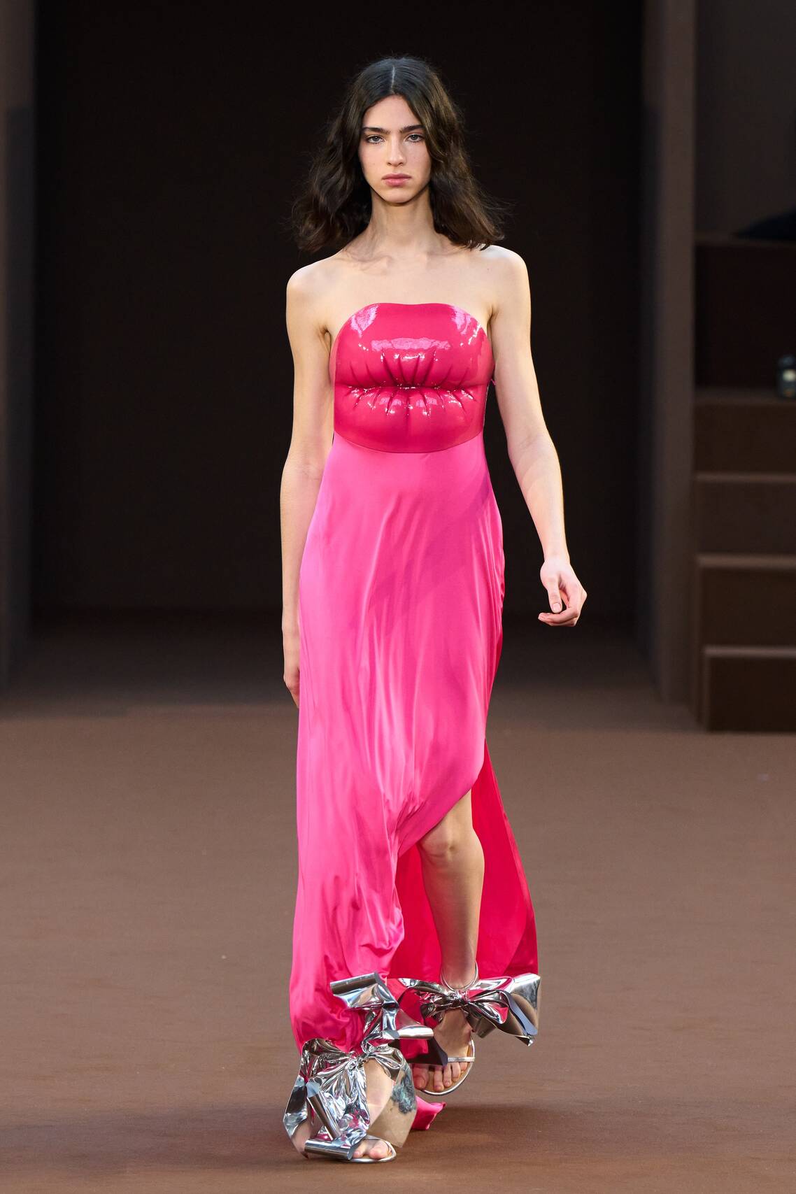 Новая коллекция Loewe стала символом сюрреализма на парижской Неделе моды. Из шоколадно-коричневого подиума торчали большие оранжевые тыквы. Модели вышли на подиум в платьях без бретелей черного и серебристого цвета, подол которых плавно перетекал в форму легковой машины. На этом эксперименты с геометрическими деталями не закончились: далее девушки продемонстрировали платья, верх которых был выполнен в виде губ.