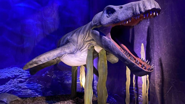На выставке "Динозавры морских глубин" представлены 20 морских существ в натуральную величину. Экспонаты морских динозавров с точностью до мельчайших деталей разработаны командой учёных и палеонтологов. Каждый из них имеет аутентичный цвет, текстуру, воспроизводит естественные движения и звуки. Уникальную экспозицию посетили школьники из семей вынужденных переселенцев. Ребятам был доступен аудиогид, озвученный учёным-зоологом Николаем Дроздовым. Во время посещения они посмотрели научный фильм о динозаврах морских глубин и приняли участие в археологических "раскопках".