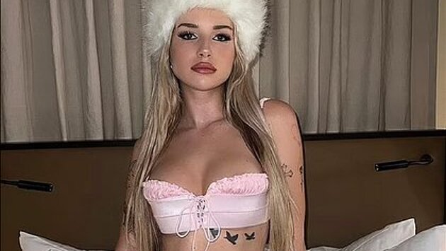 24-летняя знаменитость поделилась кадрами, на которых она позирует на кровати в атласном нижнем белье розового цвета в сочетании с длинными белыми перчатками. Образ инфлюэнсера дополнила меховая шапка-ушанка в тон аксессуаров, а также яркий макияж в стиле smoky eyes.