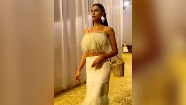 Ирина Шейк в топе с перьями вышла на подиум на показе Jacquemus