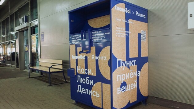 Он установлен на входе в гипермаркет на Окружном шоссе, 35. Туда можно сдать ненужную чистую одежду, непригодные для использования вещи из натуральных тканей и книги.