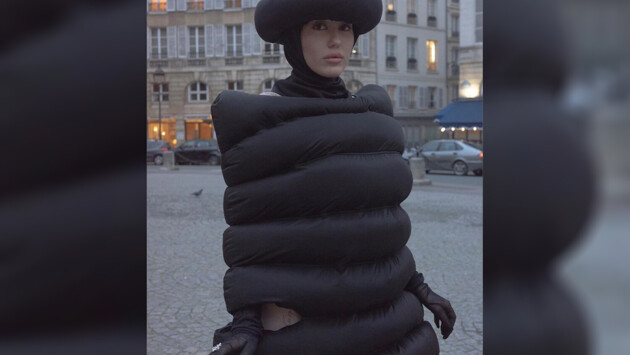 23-летняя актриса и певица появилась на публике в дутом черном платье бренда Colors со вставками для рук, а также шляпе и балаклаве в тон наряда. Образ дополнили полупрозрачные перчатки. Ноа Сайрус позировала с нюдовым макияжем.