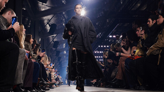 37-летняя Ирина Шейк вышла на подиум в мини-платье и кожаных ботфортах. Образ дополнили длинное пальто, застегнутое лишь на первые две пуговицы, и вместительная сумка, которую модель несла под мышкой. Волосы россиянки были собраны в гладкий хвост, а макияж практически отсутствовал.