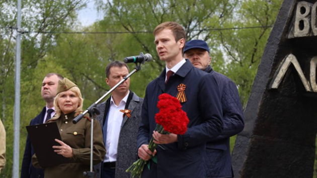 В Лобне в День Победы возложили цветы к Вечному огню у мемориала «Звонница»