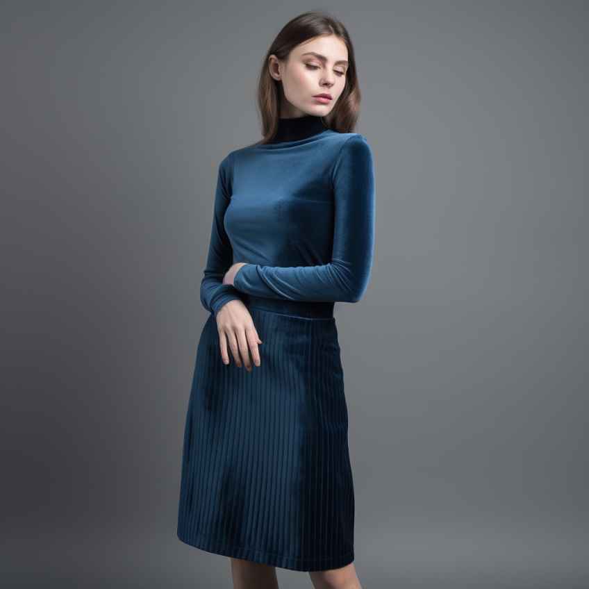 Осенью-зимой будут актуальны велюровые модели. Ткань в рубчик придаст изделию изысканные черты. При выборе расцветок пользуется популярностью сине-голубая, сиренево-фиолетовая цветовая гамма.