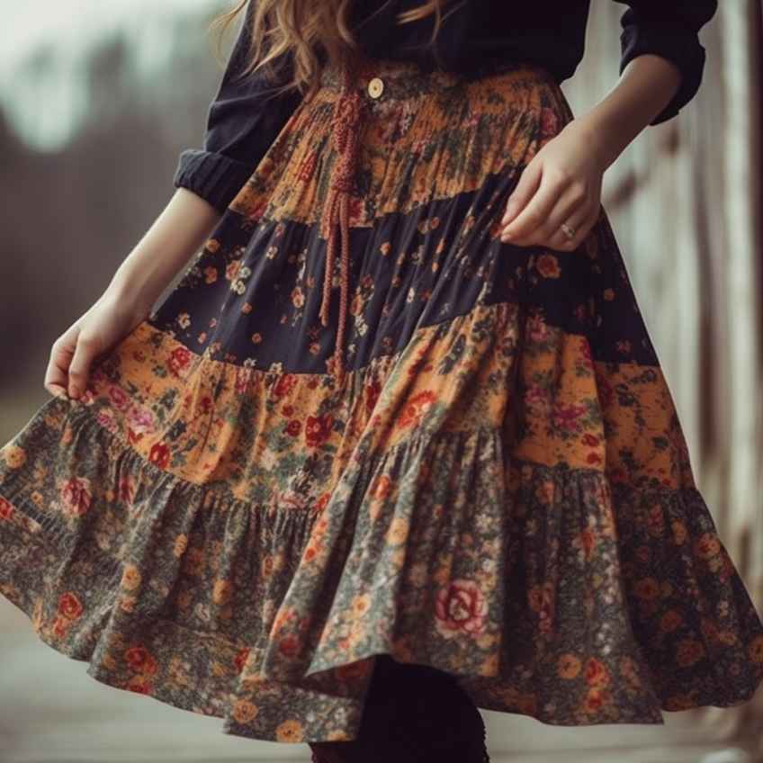 Комбинированные модные юбки помогут привлечь внимание к обладательнице такой вещи. При создании моделей прибегают к сочетанию тканей, отличающихся по структуре, дополнению разноцветными вставками. Любительницы стиля бохо оценят вещи, выполненные в технике пэчворк, состоящие из отдельных контрастных лоскутов ткани.