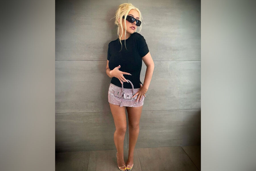 Кристина Агилера показала фигуру в имитирующей сумку мини-юбке