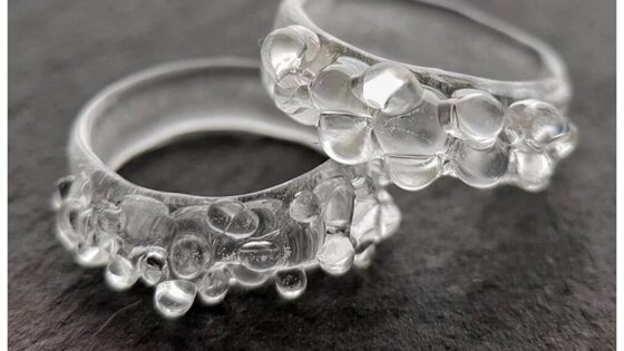 Один из самых нестандартных материалов для обручальных колец — эпоксидная смола. С ее помощью можно создавать кольца любых форм и цветов, а также комбинировать смолу с другими материалами — например, с деревом.
