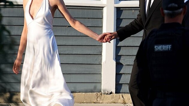Сама Маргарет тоже не стала заморачиваться с обувью на высоком каблуке и выбрала белые атласные балетки с ремешком. Надо сказать, они отлично смотрелись с простым, но при этом изысканным подвенечным платьем (а ведь прав был Александр Рогов: американская пройма — один из главных трендов лета!). Правда, уже на вечеринке актриса сменила его на очень милый кукольный наряд с рукавами-фонариками — получилось очаровательно, ну прямо настоящая Белоснежка. Возможно, где-то сейчас кусает локти один Пит Дэвидсон — и, в принципе, мы его понимаем.