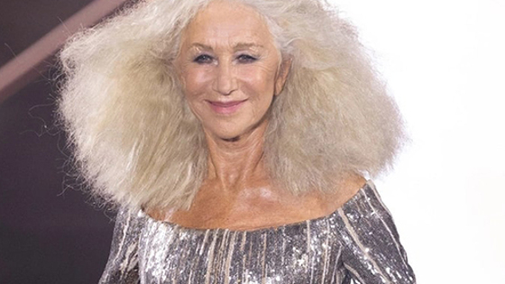 Хелен Миррен прошла по подиуму с необычной для нее пышной укладкой и в серебристом платье.
