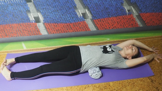 Попробовала. Первый же раз спине было очень удобно и хотелось гораздо больше 5 минут провести на валике. А вот держать правильно пальцы ног и рук было непросто даже такое короткое время. Ножки нужно положить сначала на ширину плеч, а потом свести вместе большие пальцы (пятки при этом остаются на месте).