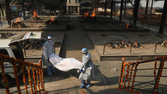 Каждый день в Индии из-за осложнений COVID-19 умирают более трех с половиной тысяч человек. Их родственники в 40-градусную жару выстраиваются в очередь, чтобы кремировать близких. Из-за нехватки мест погребальные костры разводят прямо на улице. Круглосуточно работают могильщики и на кладбищах, где хоронят людей других религий.
