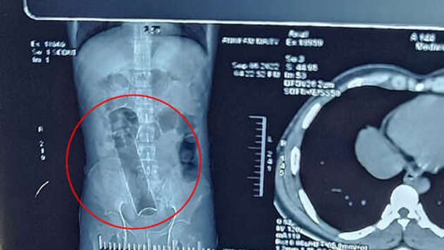 В Индии врачи спасли 27-летнего пациента, который прожил три недели с флаконом дезодоранта в заднем проходе. Об этом сообщает портал NRI. Мужчина попал в больницу в начале сентября — он пожаловался на сильную боль в животе. После ряда исследований медики выяснили, что в толстой кишке пациента застрял флакон с дезодорантом. По словам врачей, мужчине пришлось перенести экстренную операцию, чтобы извлечь инородное тело. "Этот случай был для нас большим событием. Мы относились к этому с большой осторожностью", - отметил один из медиков. Однако в ходе хирургического вмешательства у пациента были повреждены как пищевод, так и кишечник. Ранее сообщалось, что врачи извлекли 20-сантиметровую бутылку из заднего прохода 50-летнего иранца, который боялся рассказать жене о случившемся. Пострадавший вставил бутылку вверх дном, чтобы затем вытащить ее за горлышко, однако сделать это самостоятельно у него не получилось: предмет застрял в толстом кишечнике.