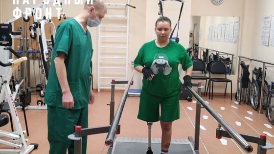 Накануне Нового года женщина впервые за семь месяцев начала ходить. Сейчас Ольга привыкает к временному механическому протезу. Для этого ей необходимо выполнять различные упражнения.