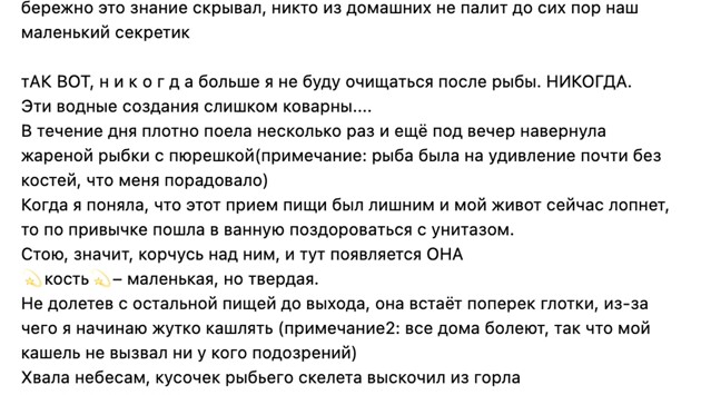 «Всем привет, я словила КП (компульсивное поведение. — Прим. ред.) на чайный гриб. По*** на этот гриб, они летом в лесу растут, стоит только нарвать и в банку кинуть. Но как мне быть здесь и сейчас? Мать придет и спросит, куда я его дела. Может, выблевать его и промыть в щелочном растворе соды для нейтрализации кислоты? Мало ли, останутся некоторые живые клетки для дальнейшего роста». Все это — где-то в просветах между мемами и задушевными беседами. В похуденческом форшмаке не хватает лишь родительского участия.