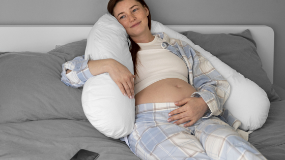 Во время беременности женщинам обычно требуется больше пространства и больше подушек — их можно класть под ноги, под бок, со стороны спины. Можно использовать специальные подушки для беременных — с ними проще найти удобную позу для сна.