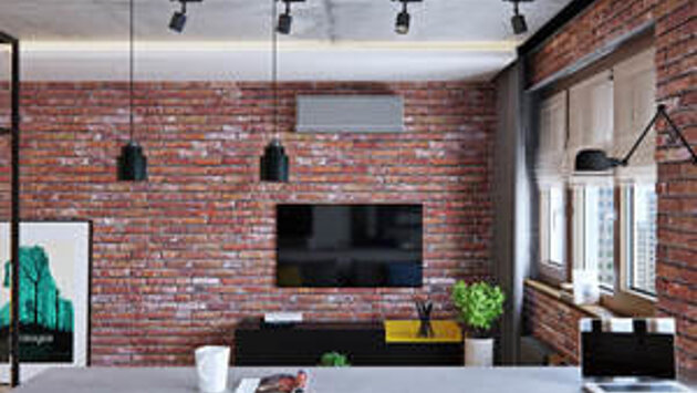 Владелец квартиры в жилом комплексе «Белые Росы» в подмосковных Котельниках любит стиль лофт и встречи с друзьями за кальяном. Поэтому основатели мастерской Geometrium Павел Герасимов и Алексей Иванов решили не просто сохранить единое пространство, но и присоединить лоджию и обустроить мини-кальянную с местом для отдыха. Согласовать такую перепланировку было проблематично, поэтому на месте стены установили стеклянную перегородку. Еще одна прозрачная конструкция в металлическом профиле отделяет уединенную спальную зону. Благодаря этому стены в этом open space остались лишь между комнатой, коридором и санузлом. Все системы хранения выстроили в одну линию в центре квартиры, хотя они и разделены стенами. Встроенный шкаф в прихожей продолжается нишей в санузле для стиральной машинки и шкафчика для бытовой химии, а затем переходит в шкаф для одежды в спальне. На кухне тоже соорудили шкафчики под потолок, благодаря чему гарнитур стал намного вместительнее. Для отделки использовали преимущественно натуральные материалы, такие, как дубовая паркетная доска и сланец – его можно увидеть на кухне и балконе, в санузле и прихожей. Кое-где он даже переходит с пола на стены. Клинкерный кирпич из бетона имитирует старинную кладку, а остальные стены покрасили. Но для части поверхности отделкой вовсе пренебрегли. Так, потолок почти во всей квартире остался нетронутым – «от строителей». «Сам по себе бетонный потолок неровный и неоднородный, его придется выравнивать и вычищать от штукатурки и некоторых дефектов, – делятся авторы проекта. – Также на потолке будет открытая проводка, поэтому ее нужно будет делать аккуратно, чтобы это смотрелось эстетично». Цветовую гамму для всей квартиры задал натуральный оттенок кирпича. Но в остальном палитра спокойная, бело-серая. Акценты расставляет темный графитовый сланец и такой же темный цвет в отделке некоторых стен. «Мы старались использовать как можно больше светлых нейтральных оттенков, чтобы не перегрузить интерьер темными тонами», – отмечают авторы проекта. Присутствуют здесь и теплые оттенки натурального дерева – на полу и в конструкции из реек в холле, спальне и на потолке бывшей лоджии. Яркости интерьеру придают декоративные элементы: картины, постеры, текстиль. «Это молодежный дизайн, и в будущем заказчик может захотеть более нейтральный интерьер. Поэтому мы сделали яркие акценты только на тех элементах, которые при необходимости можно будет убрать или заменить на другие», – подчеркивают дизайнеры. На мебель для проекта не планировали тратить большой бюджет, поэтому все системы хранения и кухонный гарнитур приобрели в ИКЕА – это модульные системы ПАКС. Барная стойка – не что иное, как высокие кухонные шкафы. А стулья из Deephouse придают квартире атмосферу бара. Еще один выбор дизайнеров в пользу экономии – кровать из паллет, на которую просто уложили матрас. Особое внимание авторы проекта уделили освещению, предусмотрели три сценария: общее, функциональное и декоративное. За первое отвечают точечные накладные светильники. В деревянных рейках тоже спрятали освещение – оно переходит с потолка на стену, но при этом общее потолочное функционирует отдельно от функционального на стене. Над барной стойкой появились подвесные светильники и бра, на кухне – светодиодная лента над рабочей поверхн
