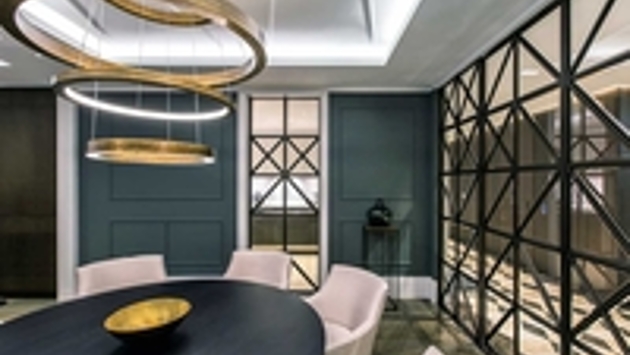 Квартира расположена в новом жилом комплексе Cheyne Terrace в одном из престижных районов Лондона — Челси. Владельцы, московская семья, приобрели апартаменты в качестве жилья на время командировок или продолжительных поездок в город: в Лондоне учится их сын–студент. Как принято в люксовом ценовом сегменте, квартира продавалась под чистовую отделку. При такой внушительной площади (180 квадратных метров) напрашивалось больше открытое пространство, тем не менее планировку заказчик просил оставить без изменений, в итоге все функциональные зоны остались на своих местах. Чего не скажешь об интерьерных решениях: здесь нужно было начать всё с чистого листа. Архитекторы из бюро Megabudka выступили в новом, непривычном для себя амплуа. «Заказчики высказывали пожелание сделать интерьер в лондонском стиле, нравились также ар–деко и классика, но все эти стилевые пожелания предстояло значительно пересмотреть, — рассказывает главный архитектор проекта Дарья Листопад. — Мы приверженцы современного стиля, но и к классике, и к ар–деко относимся с большим почтением и решили раскрыть эти темы по-своему». Стены гостиной оформили традиционными классическими филёнками, но для всей поверхности выбрали смелый, неклассический цвет — глубокий тёмно–зелёный. «Комната вытянутая по форме, и нужно было её визуально подсобрать, — объясняет Дарья. — Зелёный цвет нам в этом помог — придал помещению глубину и уют». Эксперимента с цветом архитекторам показалось мало, и в качестве антагониста классическому декору они добавили современный элемент — большое панно–трансформер из тонированного дуба с телевизором, камином и потайными полками. Главное украшение коридора — стена, отделанная деревянными панелями с вертикальной рассечкой, за частью из которых прячутся двери в санузлы и подсобные помещения. «Нам нужно было скрыть наличие множества дверей, расположенных в длинной стене, — комментирует архитектор. — Мы решили проблему с помощью деревянных панно, которые, с одной стороны, маскируют двери, а с другой — формируют пространство». Пространственная игра с плоскостью стены есть и в главной спальне: в зеркальном кубе спрятана гардеробная. Предметная среда — важная часть проекта. Мебель — предметы классического дизайна, часть была заказана у известных брендов, некоторые куплены на винтажных ярмарках в Лондоне. Почти весь декор и элементы освещения представляют стиль ар–деко. «При довольно спокойной оболочке нам хотелось, чтобы интерьер был сочным, выразительным, — замечает Дарья, — поэтому декор использовали яркий: латунь, патина, строгая геометрия, тёмный металл дали нужный эффект! Доказательством того, что наш эксперимент удался, послужила победа в одном из интерьерных конкурсов, интерьер признали лучшим в категории luxury». Дарья Листопад отмечает: «Мы очень долго пытались найти нужный образ. Откровенное ар–деко оказалось не тем, что на самом деле хотел заказчик, чистая классика была суховата и не отвечала требованиям, а современный минималистский подход не позволял создать действительно уютный интерьер. В конечном итоге, пройдя долгий путь диалогов, поиска аналогов и обсуждения стилевых терминов, мы решили выйти за рамки одного направления и оттолкнулись непосредственно от самого объёма, его геометрии, нашего ощущения пространства и классичес