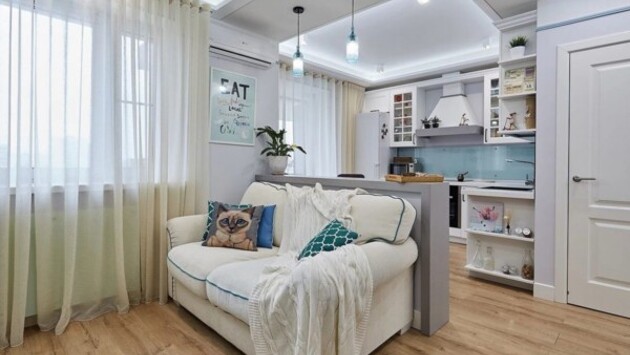 Из двухкомнатной квартиры в трёхкомнатную Ярослава Галайко, дизайнер интерьеров: — А в этой двухкомнатной квартире кухню совместили с гостиной. Это стало возможным благодаря тому, что кухня была довольно просторной изначально, а жилая комната разделена на две, так как в ней было два окна. Таким образом из двухкомнатной квартиры площадью около 48 квадратных метров (но согласитесь, очень удачной планировки) дизайнер сделал трёхкомнатную. В нашей студии тоже однажды был подобный опыт. Квартиру купили для перепродажи, и сделанная перепланировка позволила значительно повысить стоимость недвижимости.