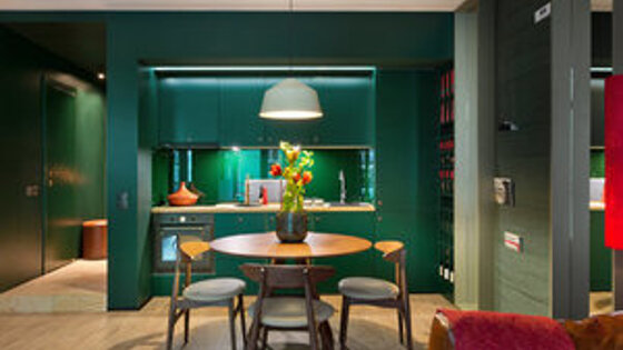 Как создать интерьер кухни, который будет не похож на другие? Используйте 8 идей из проектов наших дизайнеров. Так, как сделала Елена Фатеева в дизайне этой квартиры. Фасады кухни глубокого изумрудного оттенка повторяются в прихожей и частично — в гостиной. Это позволило буквально «растворить» кухню в пространстве. Вдохновитесь проектом Маргариты Мустафиной. Дизайнер выбрала ярко-голубую плитку в восточном стиле. Этот фартук взял на себя акцентную роль в кухне-гостиной. Вам понравятся несколько лайфхаков от участников нашей рубрики «Герой INMYROOM». Владельцы этой квартиры — любители эргономики и порядка: под кухонным гарнитуром они заранее предусмотрели место для робота-пылесоса, а вместо одного из ящиков установили раздвижную гладильную доску. Как разместить большую компанию на маленькой кухне? Установить раздвижную столешницу и объединить пространство. Так сделали дизайнеры бюро «Общая площадь» в маленькой хрущевке. Теперь при необходимости часть кухонной столешницы можно поднять и использовать дополнительное пространство как рабочую зону, или организовать ужин на 5 персон. В интерьере этой кухни-гостиной дизайнеры студии «Уютная квартира» вместе с владелицей сделали полки и рейлинги вместо навесных шкафов. Такой прием позволил разнообразить кухню декором и аксессуарами. Еще один пример из нашей рубрики «Герой INMYROOM». Владельцы квартиры Анна Петунина и ее супруг придумали, как улучшить прямую кухню: необычный гарнитур с акцентным элементом — волнообразной вытяжкой. А для кухни этого частного дома дизайнеры студии Prosperity выбрали большую шестиконфорочную плиту в винтажном стиле. Чтобы интерьер выглядел завершенным, над плитой сделали металлический фартук и дополнили такой же массивной вытяжкой. И обычную кухню из масс-маркета легко сделать оригинальной. Это удалось Вере Тарловской. Дизайнер выбрала готовый гарнитур ИКЕА, но заменила ручки — подходящая фурнитура нашлась в H&M Home. Вдохновитесь проектом Жени Ждановой: для оформления кухни дизайнер выбрала красивый, но не вычурный микс. Жене удалось «подружить» элементы в стиле лофт, ретро-дизайн холодильника и обеденный гарнитур в эстетике mid-century модерн. Материал подготовлен при поддержке Мебельного Торгового Комплекса «ГРАНД». На обложке: дизайн-проект Алены Юдиной.