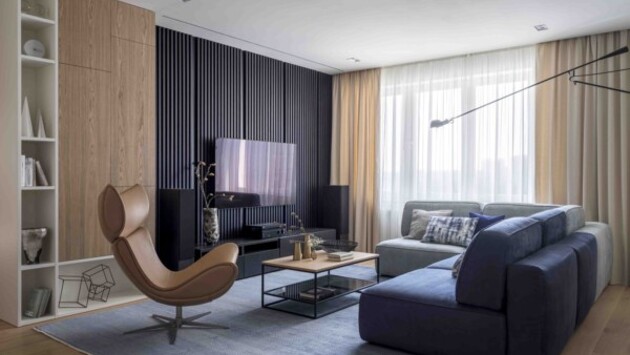 Эта квартира досталась студии Geometrium со свободной планировкой без перегородок, только с несущей конструкцией под санузел. Заказчики хотели совместить гостиную, кухню и столовую, сделать гардеробную, полноценную гостевую комнату и второй гостевой санузел. Интерьер должен был получиться современным, функциональным, сдержанным и практичным. Дизайнерам удалось воплотить все пожелания! Алексей Иванов и Павел Герасимов, соруководители студии дизайна интерьера Geometrium Алексей Иванов учился в СПАСК по специальности техник-архитектор и в СПбГТУ («Политех») по специальности «промышленно-гражданское строительство». Проходил курсы по дизайну интерьера и управлению бизнеса. До создания собственной студии работал в ведущих архитектурных мастерских Санкт-Петербурга, в том числе в архитектурной мастерской Мамошина. Затем руководил несколько лет развитием двух крупных тренинговых компаний в Санкт-Петербурге, Москве и Киеве. Павел Герасимов окончил Школу архитектуры и дизайна по специальности «дизайнер интерьера». Прошёл курсы повышения квалификации по 3D-визуализации и дизайну, а также управлению в бизнесе. Автор собственного практического базового курса для дизайнеров интерьера и начинающих специалистов. Авторы проекта использовали свой любимый приём: использование одних материалов во всех помещениях. Это даёт возможность визуально расширить площадь квартиры и объединить её зоны. Например, в гостиной применили такие же чёрные рейки, как и в прихожей. По дизайн-проекту это должны были быть сплошные рейки без пробелов, но в процессе ремонта заказчик внёс коррективы и решил не закрывать места стыков панелей рейками. Дизайнерам это решение показалось оригинальным. Интересен и большой комфортный диван. Его модули можно легко переставлять с места на место и менять конфигурацию. Ощущения простора добились за счёт светлых натуральных тонов: в отделке использовали белые и серые оттенки, а некоторые элементы выделяли светлым и тёмным деревом. А вот на полу в зоне кухни задействована тёмная керамогранитная плитка. Заказчики хотели отказаться от подвесных светильников, потому их разместили только над обеденным столом. Это оптимальный вариант освещения для зоны приёма пищи. Системы хранения на кухне закрытые, предусмотрена специальная ниша, куда встроено дополнительная система хранения. Так получили г-образную кухню. В спальне хозяев разместили большую кровать с деревянными рейками за ней. На рейках закрепили бра, которые добавляют в интерьер динамики своим чёрным цветом. Шкаф в спальне хозяев встроили и окрасили в цвет стен, чтобы визуально спрятать его. Он выглядит как стена и не привлекает особого внимания. Гостевая комната имеет неправильную форму из-за конструкции дома. Чтобы исправить это визуально, шкаф для хранения расположили в месте со скошенным углом. Важно было разместить полноценную двуспальную кровать, чтобы гости могли комфортно оставаться на ночь и чувствовать себя как дома. Панели на стене за кроватью — это тот же паркет, что и на полу. Светильники, свисающие с потолка, исполняют декоративную роль, но могут отлично подойти для ночного чтения. Детская комната создана для двух мальчиков. В отделке внимание акцентировано на стене, которая расписана мультипликационными образами. За кроватями расположена мягкая па