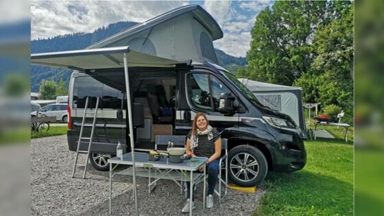 Это самый короткий автодом, который создали на немецком заводе Hymer на базе популярного Fiat Ducato, длина которого составляет всего 5 метров. И тем не менее, в этом компактном кемпере могут удобно разместиться 5 человек. Что удалось разместить на площади 10 м2? Как оказалось, немало. Справа от входа по правому борту располагается кухня. Несмотря на ее компактные размеры, мебель оборудована мойкой, двухконфорочной газовой плитой, встроенным компактным холодильником. Здесь также присутствуют закрытые полки и ящики для посуды и кухонной утвари. Столовая зона состоит из пассажирских кресел и водительского. Кресла из первого ряда являются поворотными для экономии пространства. Напротив кухни находится багажный модуль, сверху которого можно разложить спальное место для двоих. Сама же спальня находится на крыше в палатке. Здесь с комфортом можно разместить трех человек. На 10 м2 удалось даже продумать душ. Для этого используют лейку, вытянув ее из кухонной мойки. Правда, запас воды невелик, всего 35 литров. В качестве дополнительной комплектации можно приобрести переносной биотуалет. В полу гостиной зоны расположена ниша, которую можно использовать для хранения обуви. Внутренние размеры кемпера - 4960*1040*2350(3240) мм. Вес автодома - 3,3 тонны, базовая стоимость - 48,99 тысяч евро. В дополнительную комплектацию входят: дополнительное сиденье (пятое), мобильный туалет, туристический комплект из раскладных стола и двух кресел, тент-маркиза.