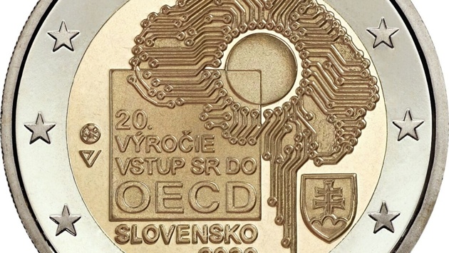 С 11 ноября 2020 года Центробанк Словакии выпускает 2 евро «20 лет вступления в Организацию экономического сотрудничества и развития» (ОЭСР).&